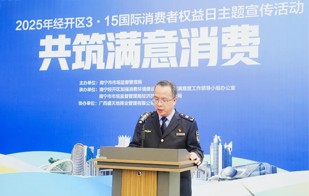 會(huì)議伊始,南寧市市場(chǎng)監(jiān)督管理局經(jīng)濟(jì)技術(shù)開發(fā)區(qū)分局負(fù)責(zé)人龍漢傳發(fā)表了重要講話。他強(qiáng)調(diào),消費(fèi)者權(quán)益保護(hù)是市場(chǎng)經(jīng)濟(jì)健康發(fā)展的基石,關(guān)乎每一位市民的切身利益 。各單位、各企業(yè)應(yīng)高度重視消費(fèi)者權(quán)益保護(hù)工作,積極履行社會(huì)責(zé)任,共同為消費(fèi)者創(chuàng)造一個(gè)公平、公正、誠信的消費(fèi)環(huán)境。