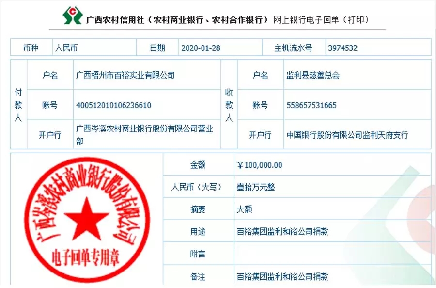 (向梧州福建商會(huì)捐款伍萬(wàn)元)