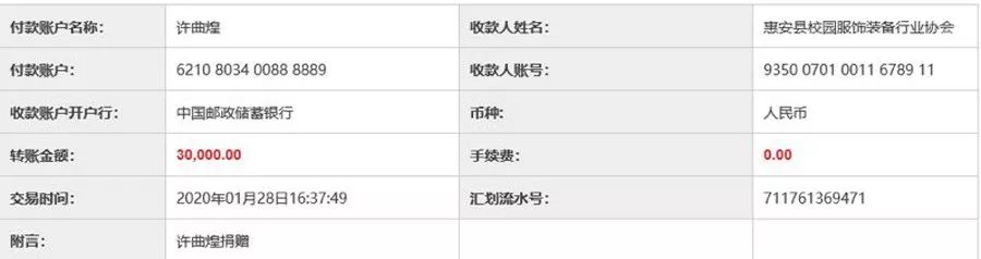 (許曲煌董事長(zhǎng)捐贈(zèng)叁萬(wàn)元到惠安校服協(xié)會(huì))